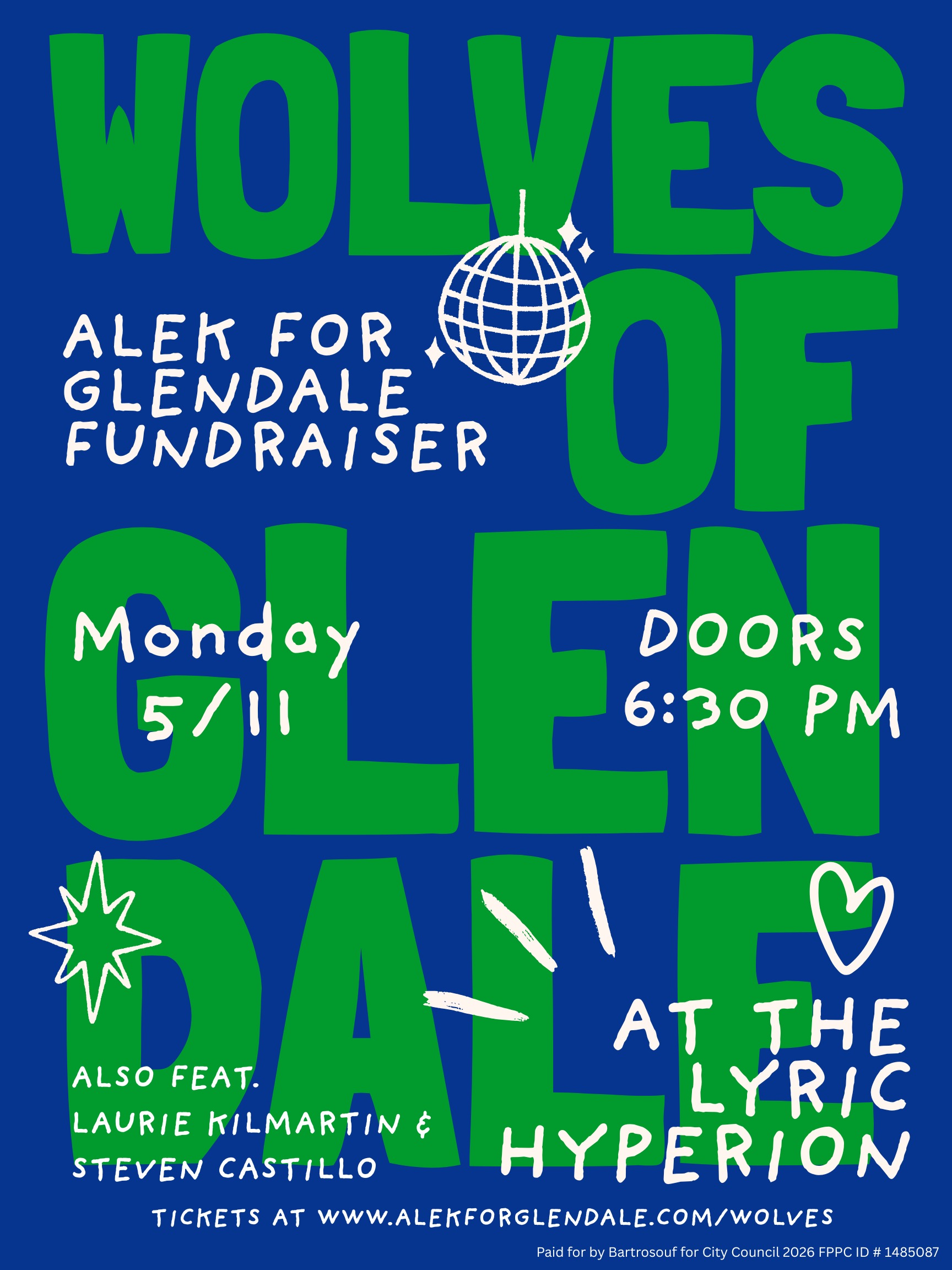 Alek’s campaign is all about building community—so let’s get together on May 11 at the Lyric Hyperion for a night of laughs and great music for a good cause!