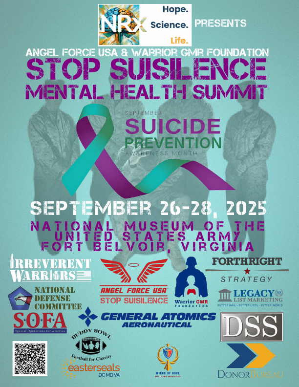 The Warrior GMR Foundation, Angel Force USA, Irreverent Warriors and other veteran service organizations will host their inaugural joint STOP SUISILENCE MENTAL HEALTH SUMMIT at Fort Belvoir, VA from September 26 to 28, 2025 during Suicide Prevention Month. This three-day event will unite veterans, mental health professionals, policymakers, community support organizations, and influencers to encourage meaningful discussions, forge broader partnerships, and create a roadmap for GETTING TO ZERO suicides.