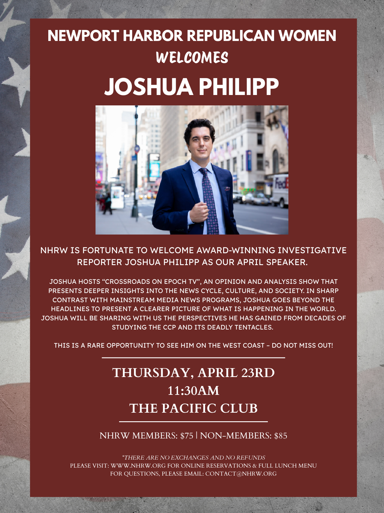 Please purchase tickets at the member rate only if you are certain your 2026 membership is current. For any guests, please purchase at the non-member rate unless the guest is a confirmed 2026 NHRW member. Please email contact@nhrw.org if you are uncertain of your membership status.