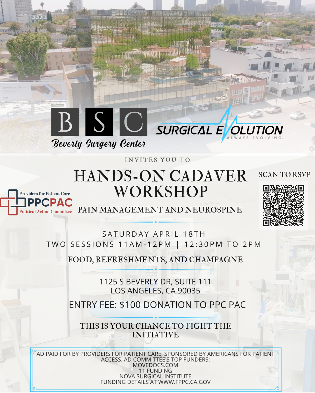 Beverly Surgery Center invites you to Hands-On Cadaver Workshop - Pain Management and Neurospine on Saturday, April 18th.