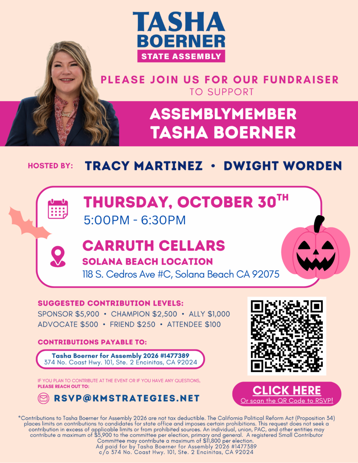 Contributions to Tasha Boerner for Assembly 2026, are not tax deductible for income tax purposes.